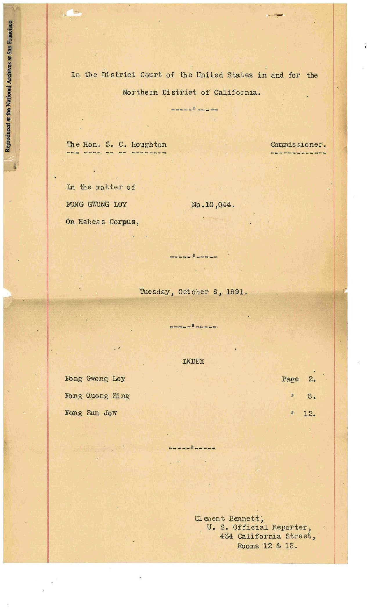 Index to Habeas Corpus Cases for the US District Court for the Northern District of California, San Francisco
