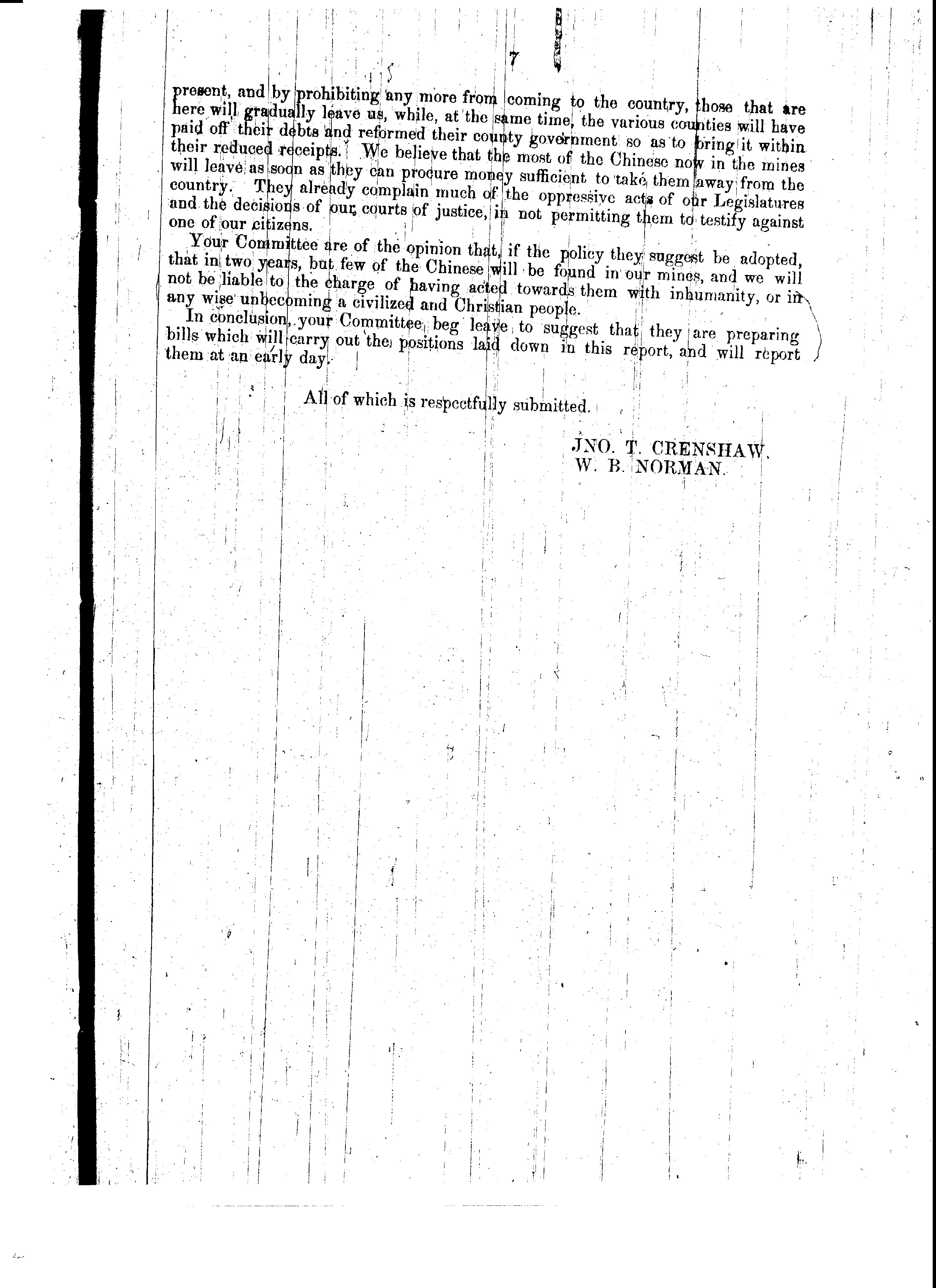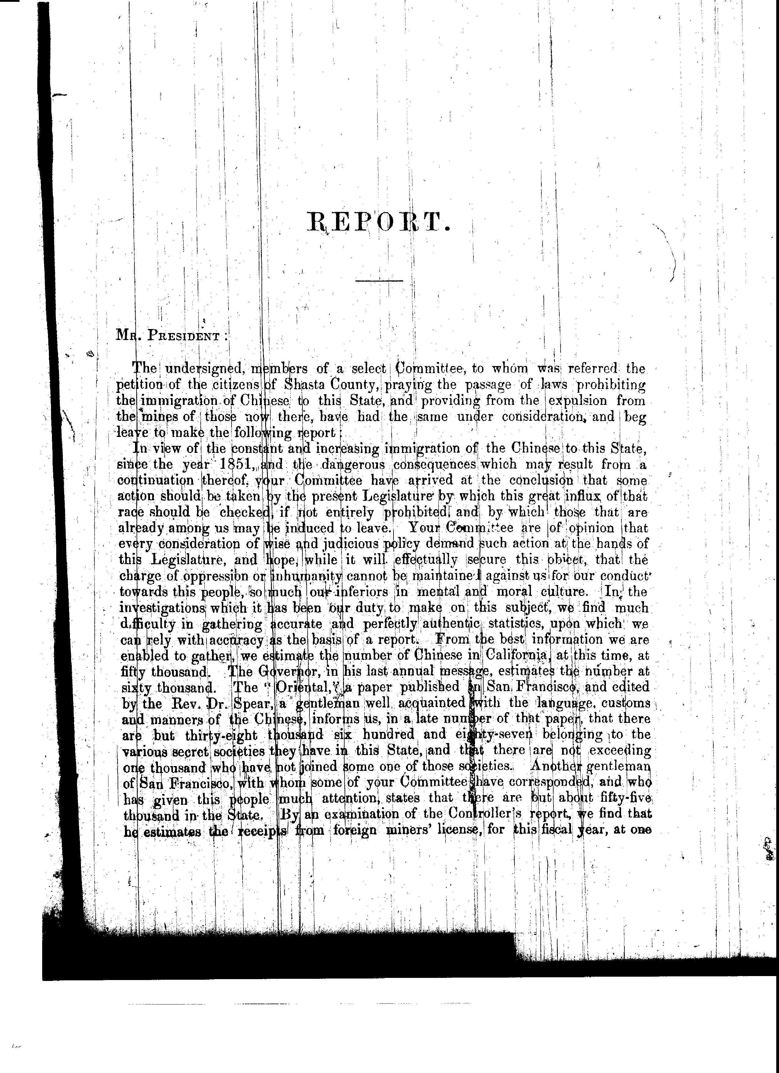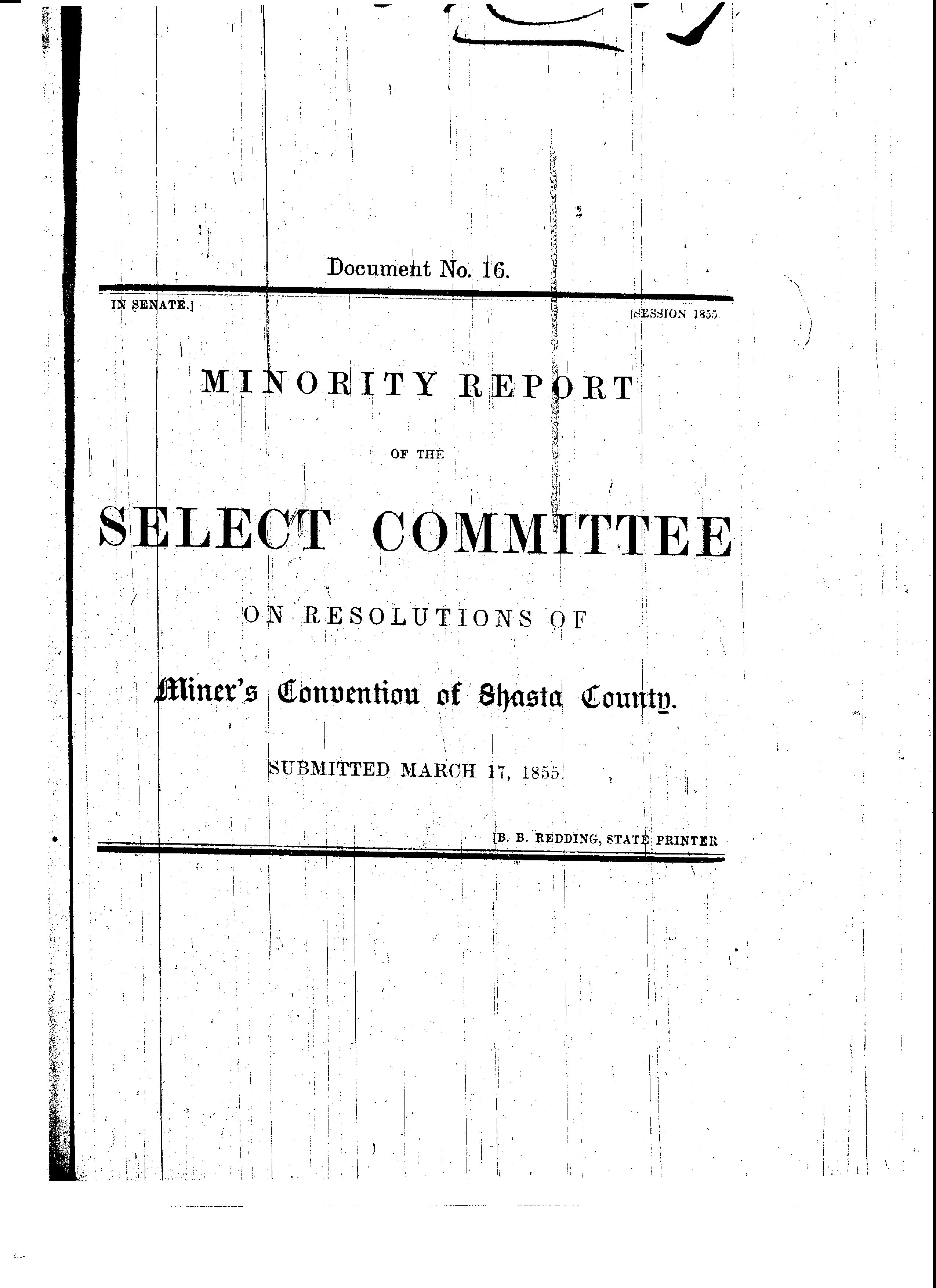 Minority Report of the Select Committee on Resolution of Miner's Convention of Shasta County